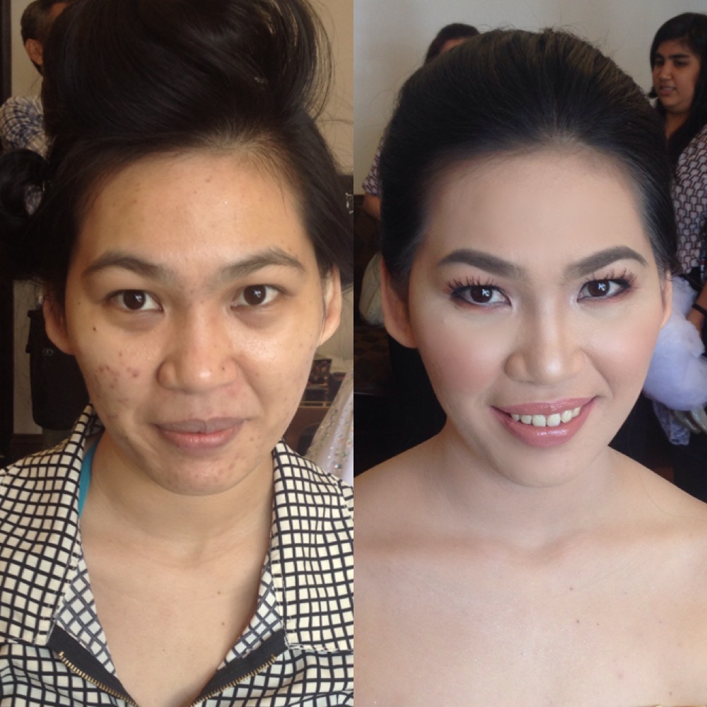 I just met Carol on her wedding day. No trial makeup since she worked overseas. Sharing with you her before and after photo using high-definition airbrush makeup technique.